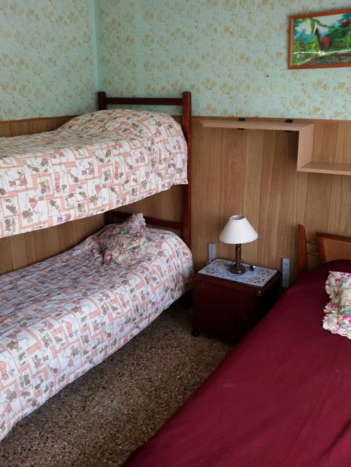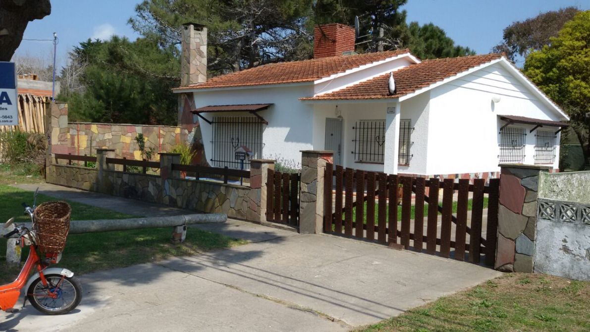 CHALET CON 3 DORMITORIOS (DOS CON CAMAS MATRIMONIALES Y UNO CON UNA CAMA CUCHETA Y SIMPLE), UN BAÑO, COCINA AMPLIA, LIVING COMEDOR AMPLIO. FONDO AMPLIO CON CESPED Y PARRILLA. ESTACIONAMIENTO.